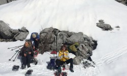 La team!  Aymeric; Fanny (co-encadrante); Jean-Luc; Patrick; Salim; Yves C’est une équipe très motivée de 6 « crapahutiens »  qui s’élance à l’assaut du sommet du cheval noir depuis Saint François Longchamp ce samedi matin. Nous profiterons d’une fenêtre météo idéale, un peu fraîche et ventée mais aussi ensoleillée. Il a peu neigé sur ce secteur les jours précédents et nous ne rencontrons globalement qu’une dizaine de cm de neige fraîche reposant […]
