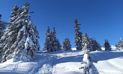 15 janvier : La Tournette En raison du Covid, il ne restait plus que quatre participants sur les 9 prévus. En raison d’un bouchon sur la route, début de la course à 10 h, ainsi nous avons pu monter tranquillement sans trop de monde. Vue magnifique au sommet. Nous avons trouvé un peu de poudre à la descente.