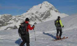 Destination le beaufortain et la Pointe de Combe bénite(2575m) versant Tarentaise. Nous partons au dessus de Granier au pied du téléski de la Chavonne que nous suivons pour ensuite partir en direction des chalets de Pra Spa. Après une traversée un peu tendue en neige dure et dans une pente raide(certains ont mis les couteaux) nous contournons la face sud de la Roche à Thomas pour se diriger vers la […]