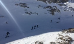 Pour cette première course de 1500m de dénivelé, direction la station de Valfrejus en Maurienne. Nous partons à 9h 30 en suivant la piste de ski de Charmasson qui nous amène sur la route du seuil. Nous poursuivons en progressant plein Ouest en direction de la Belle Plinier. Nous traversons une énorme coulée  pour grimper jusqu’à une épaule à 2670m. De ce point de vue nous apercevons la Cime du […]