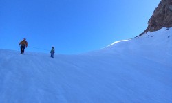 OLAN Voie Escarra (3564m) L’équipe est constituée de deux cordées : Jean-Philippe (co-encadrant) avec Laurent, Clément avec Guillaume (encadrant). Il aura fallu 3 ans pour parvenir à gravir ce beau rocher, qui se refusait à nous (météo, conditions…). Cette fois, la météo est au rendez-vous, l’équipe est au taquet et les conditions neige/rocher au top. Démarrage samedi tranquillement de Lyon pour un départ à 13h vers le refuge de l’Olan, […]